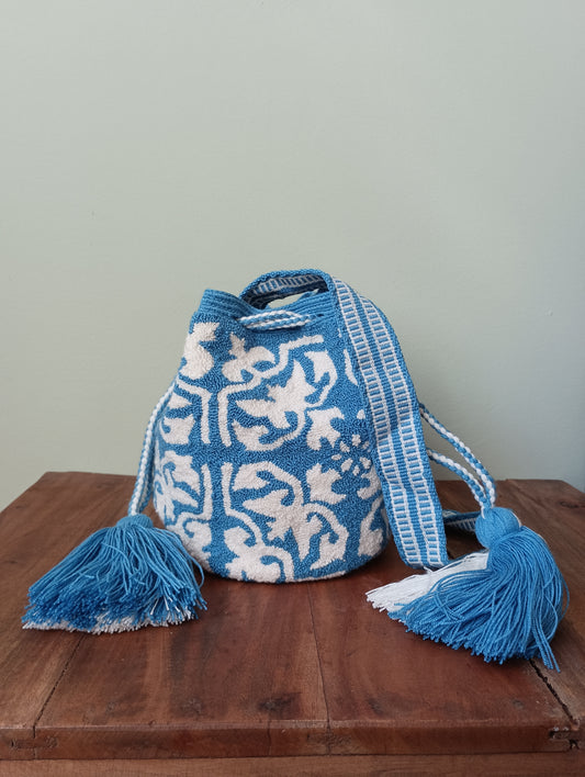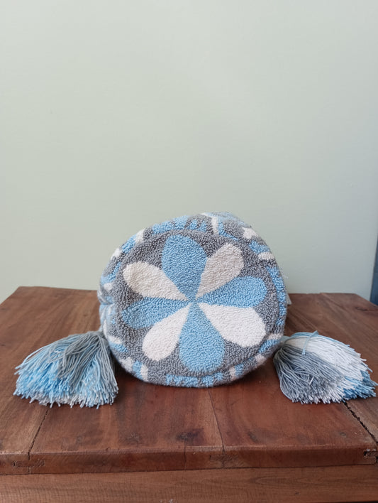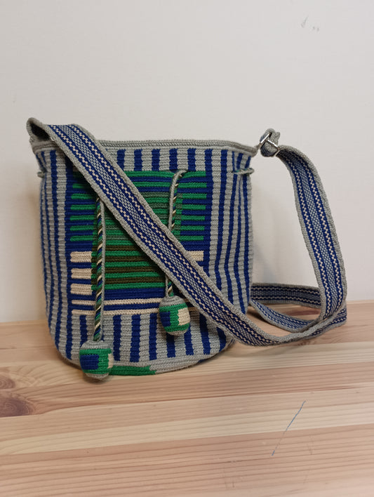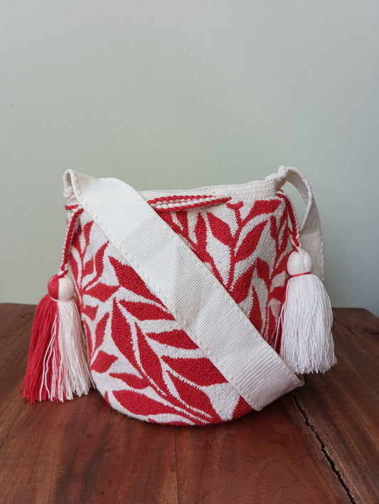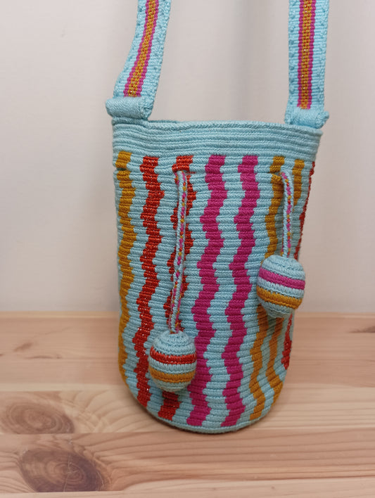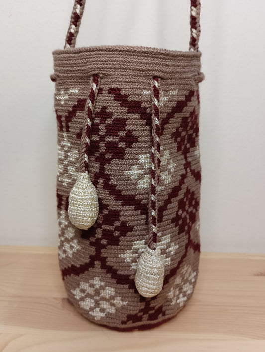 Mochila Wayuu pocket bordeaux pom pom cascabel