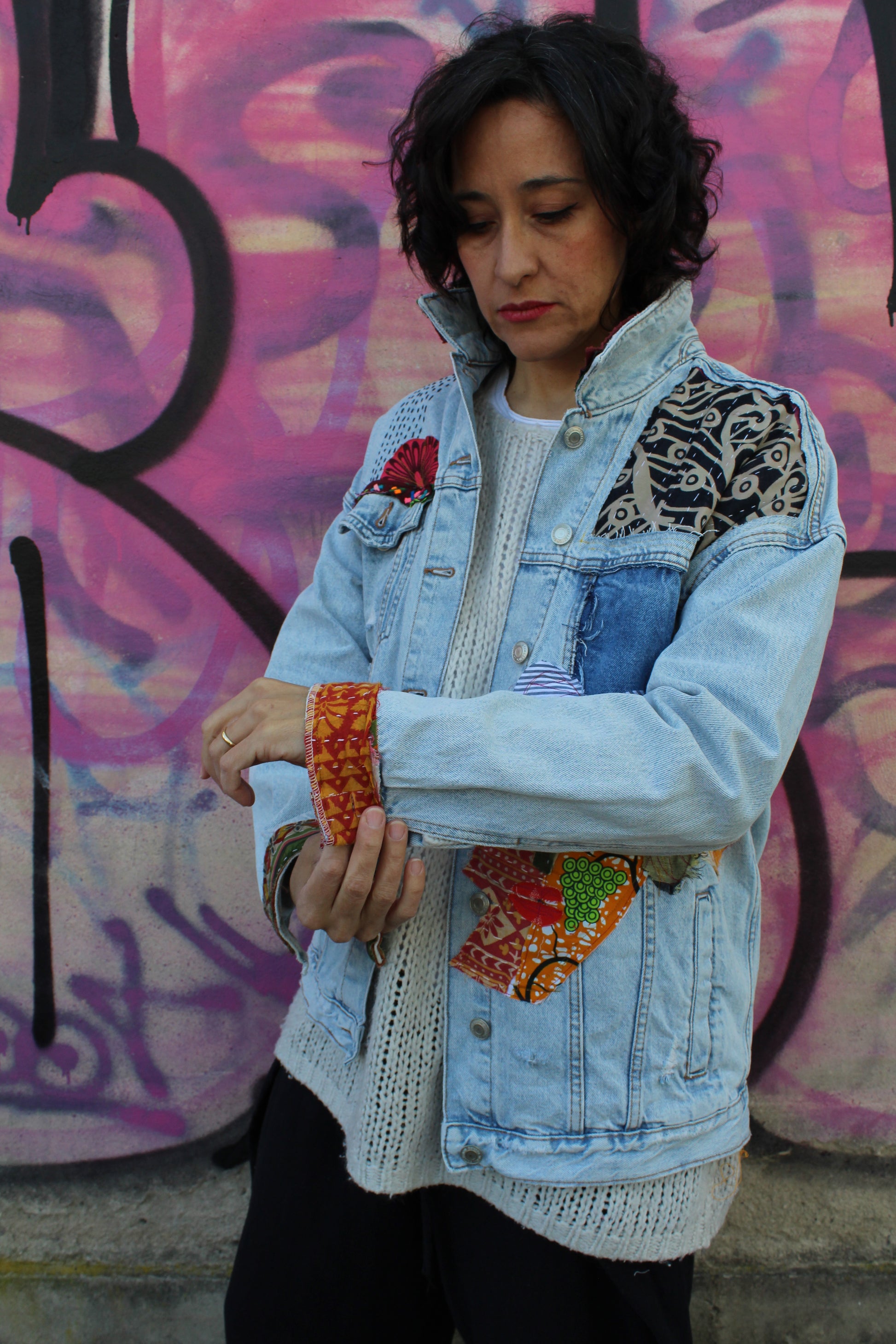 La base della giacca è stata rigenerata con inserti in antichi sari indiani e le meravigliose "mola" lavorate a mano in colombia. selezionati a mano per la loro bellezza e qualità. I ricami artigianali donano carattere e unicità, rendendo questa giacca un capo statement che non passerà inosservato.