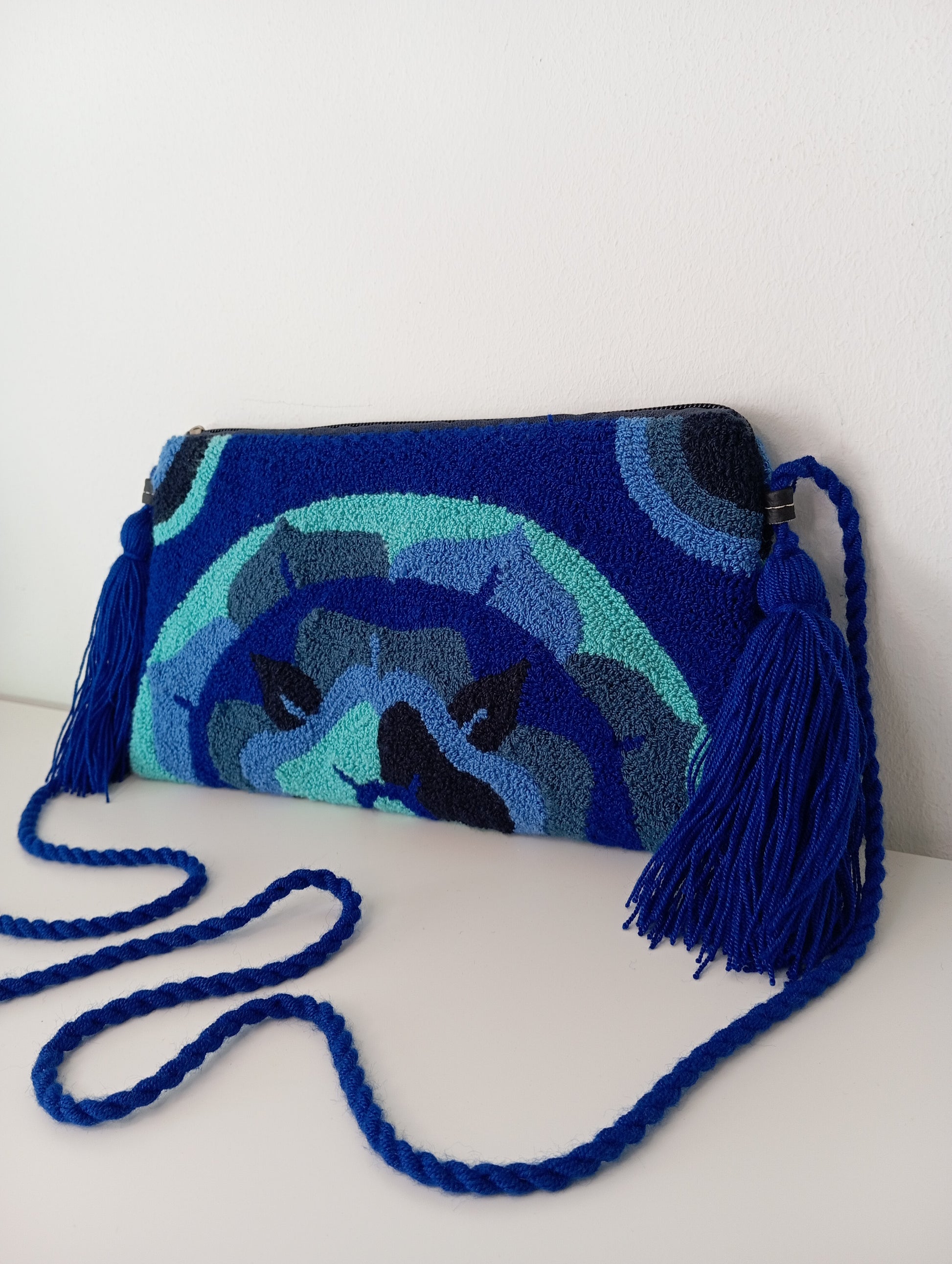 Wayuu Punchneedle shoulder bag - Blue